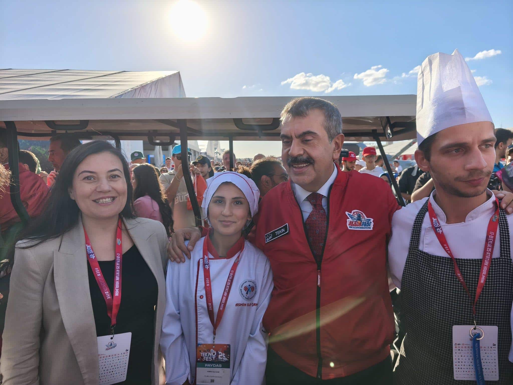 Dünyanın en büyük teknoloji festivali olan TEKNOFEST'te ilçemizi ve ilimizi temsil eden Esenyurt TOKİ Ali Duran Kız Mesleki ve Teknik Anadolu Lisemizin yiyecek içecek hizmetleri standını ziyaret eden Millî Eğitim Bakanımız Sayın Yusuf Tekin, tebriklerini ileterek yapılan çalışmalarla ilgili bilgi aldı.