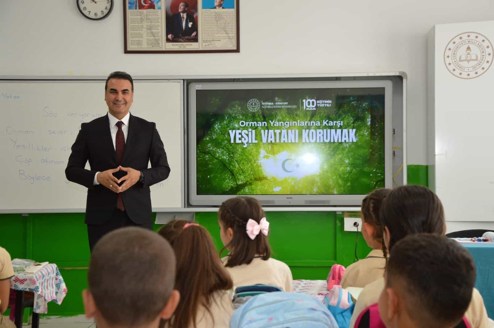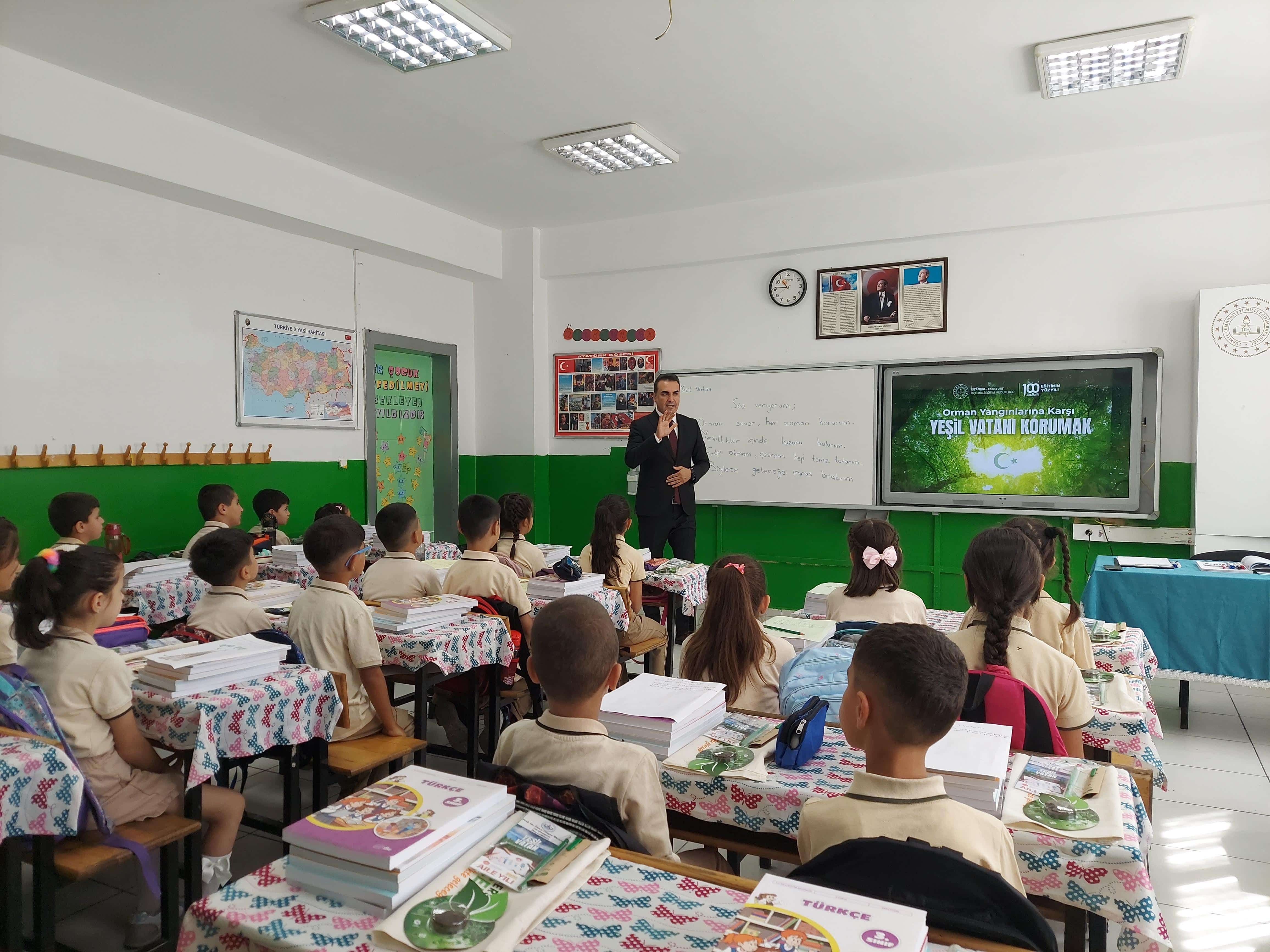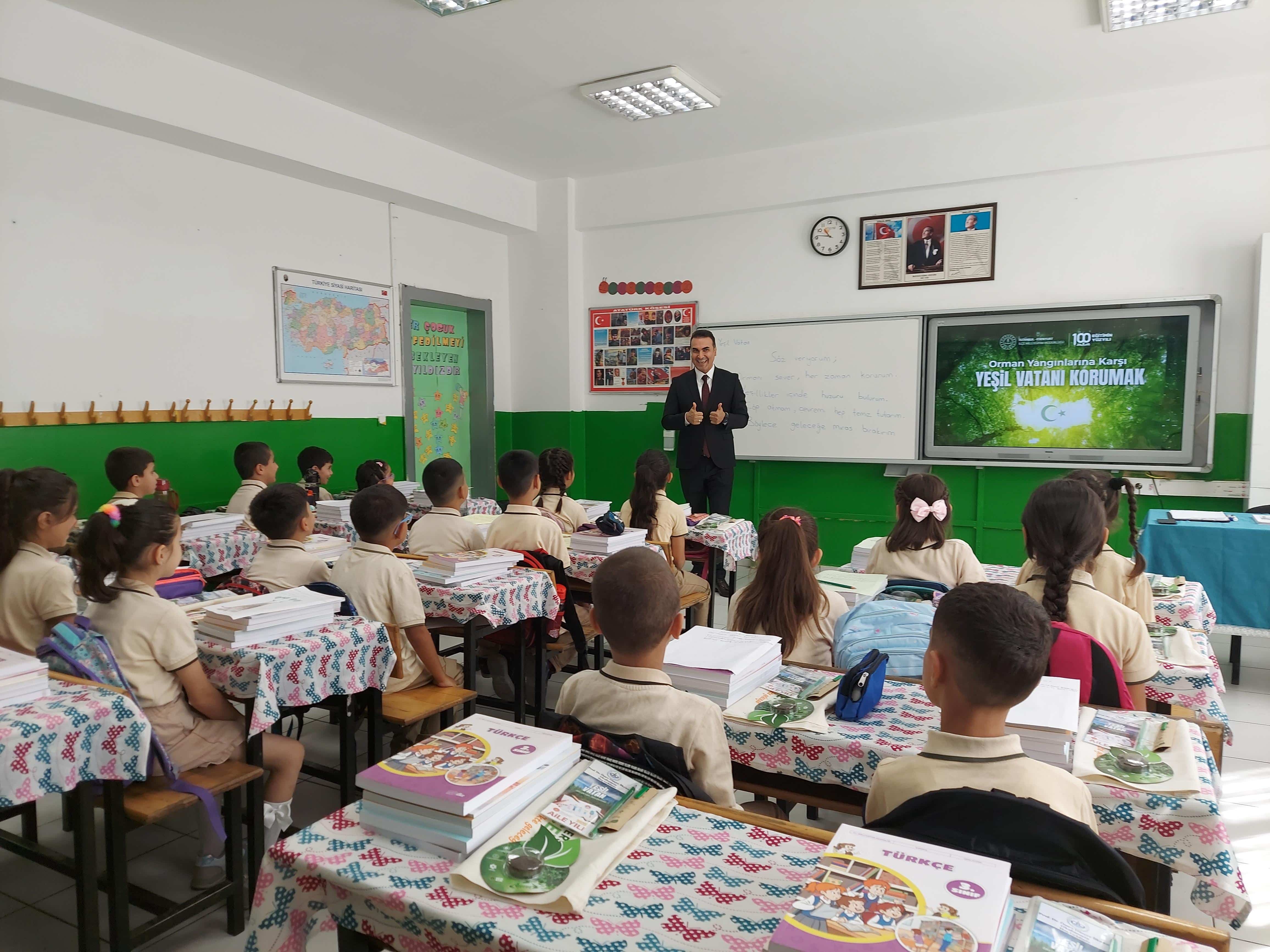 Millî Eğitim Müdürümüz Tayfun Özyolcu, Prof. Dr. Ömer Dinçer İlkokulumuzda öğrencilerimizle "Orman Yangınlarına Karşı Yeşil Vatanı Korumak" konulu dersi işleyerek yeni eğitim-öğretim yılını başlattı.